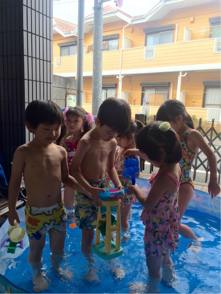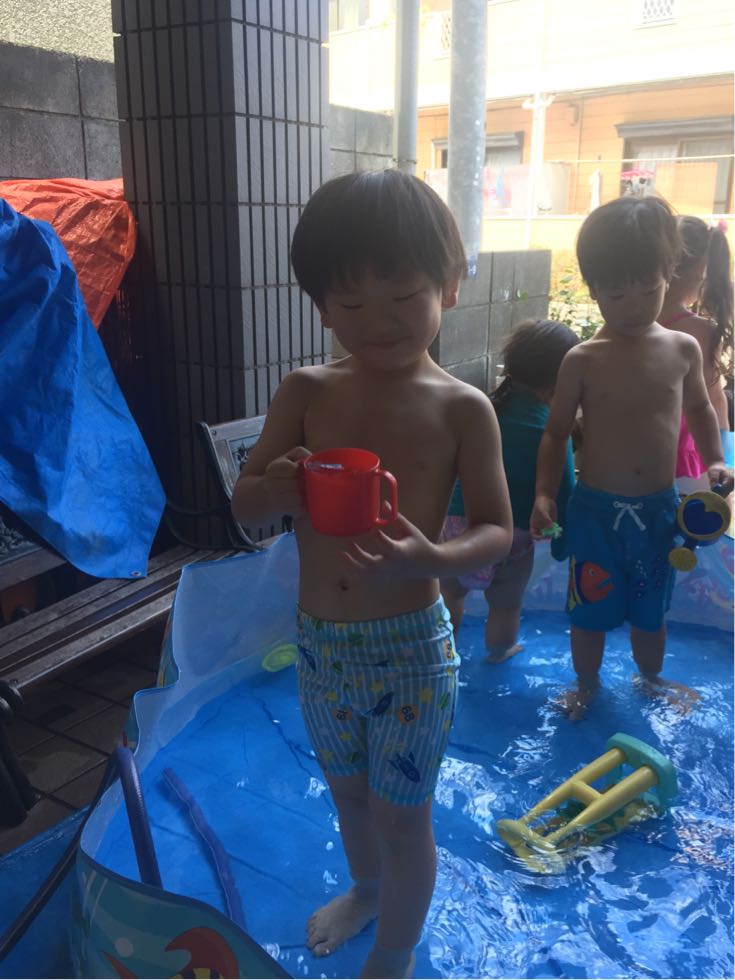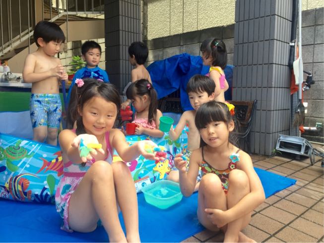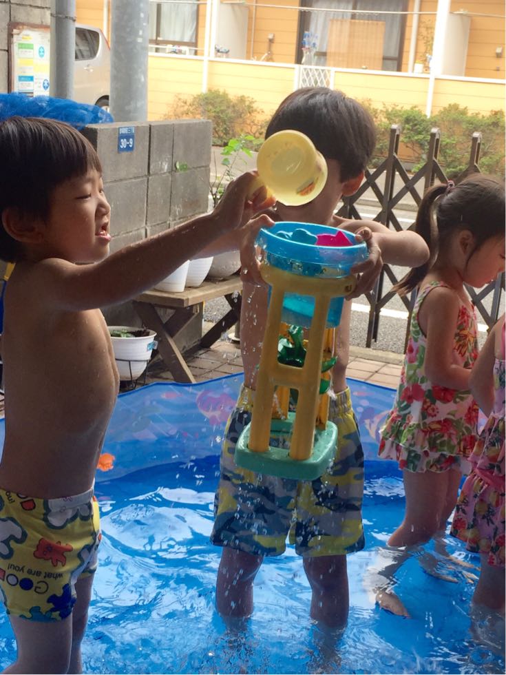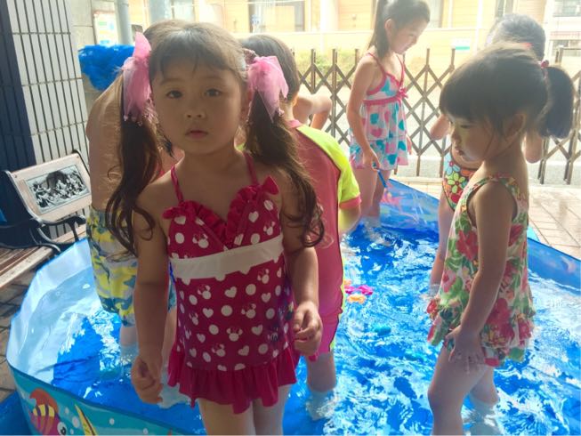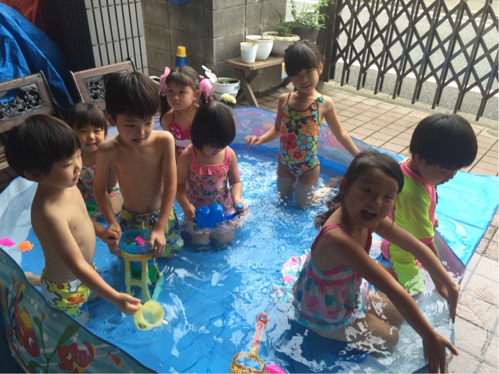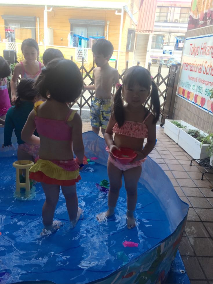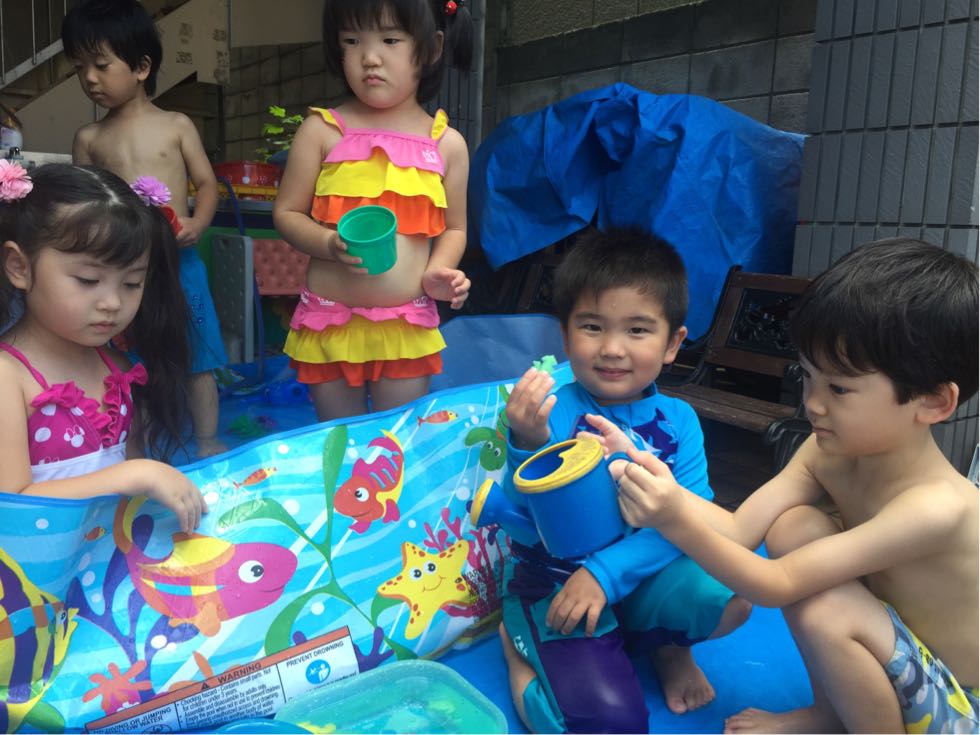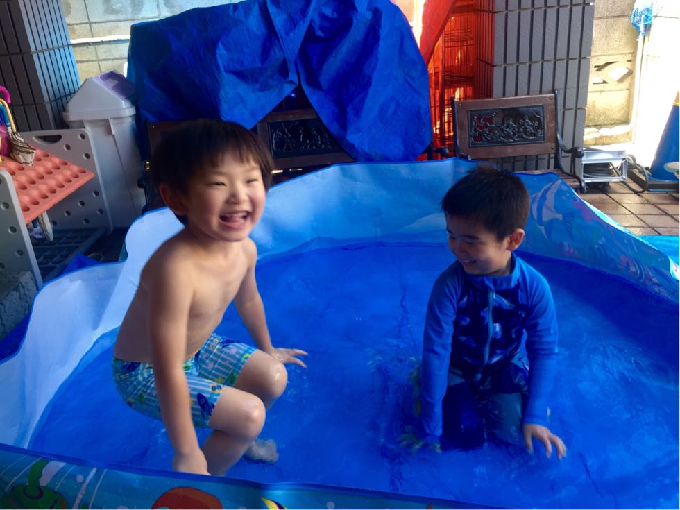 It was a hot and humid day so all the kids enjoyed playing in the pool.