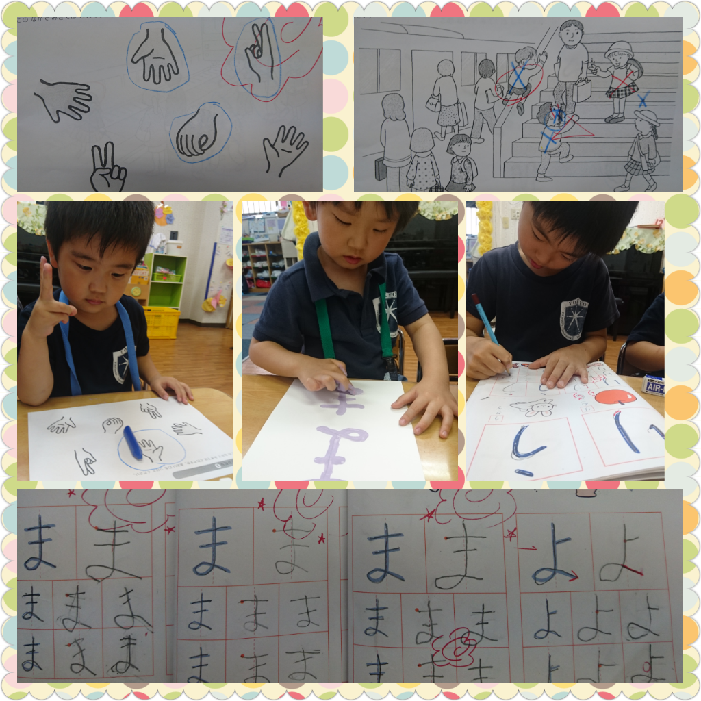 “よ”と“ま”の円の部分がとっても上手に書けていた3人♪